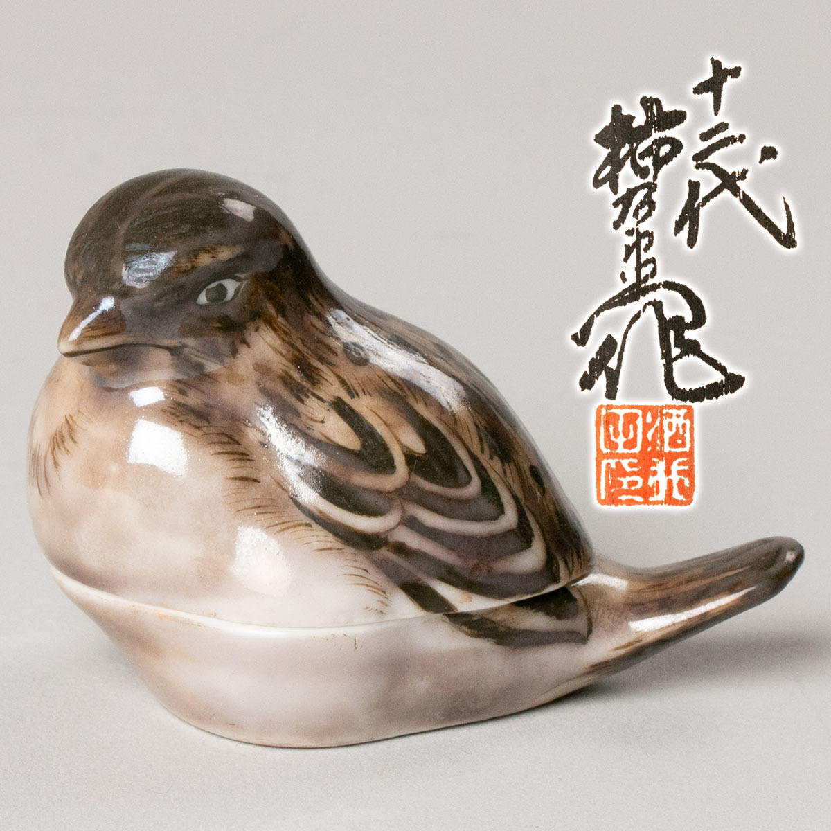- 十二代酒井田柿右衛門『雀香合』超希少作 共箱 保証 送料無料【松森美術 大特価!】