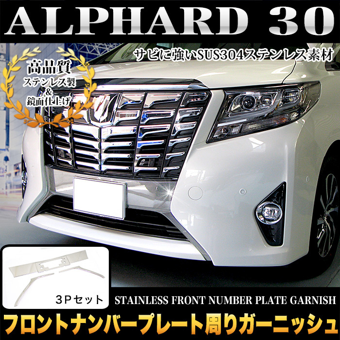 > アルファード 30 系 フロント ナンバーガーニッシュ メッキ パーツ 鏡面 クローム FJ4274