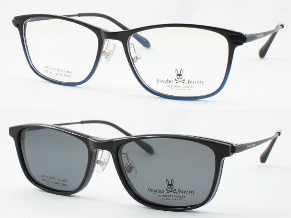 - Psycho Bunny サイコバニー メガネフレーム PB-235-3 マグネットクリップ偏光サングラス 度付き 近視 遠視 老眼 遠近両用メンズ レディース