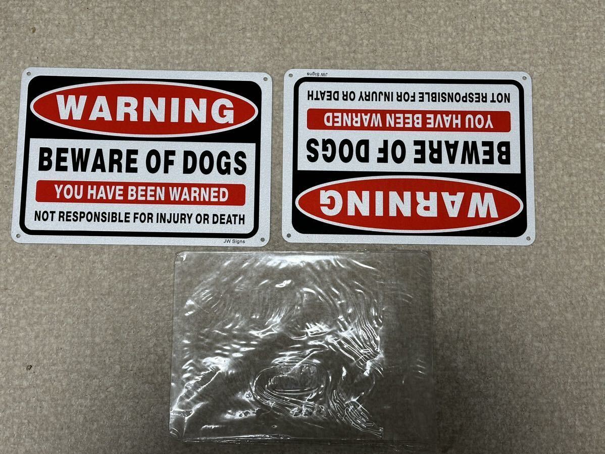 - ★彡 アメリカ 看板 アルミ製 WARNING 警告 [犬に注意してください]ガレージサイン ドアサイン ハウスサイン USA 新品2枚組