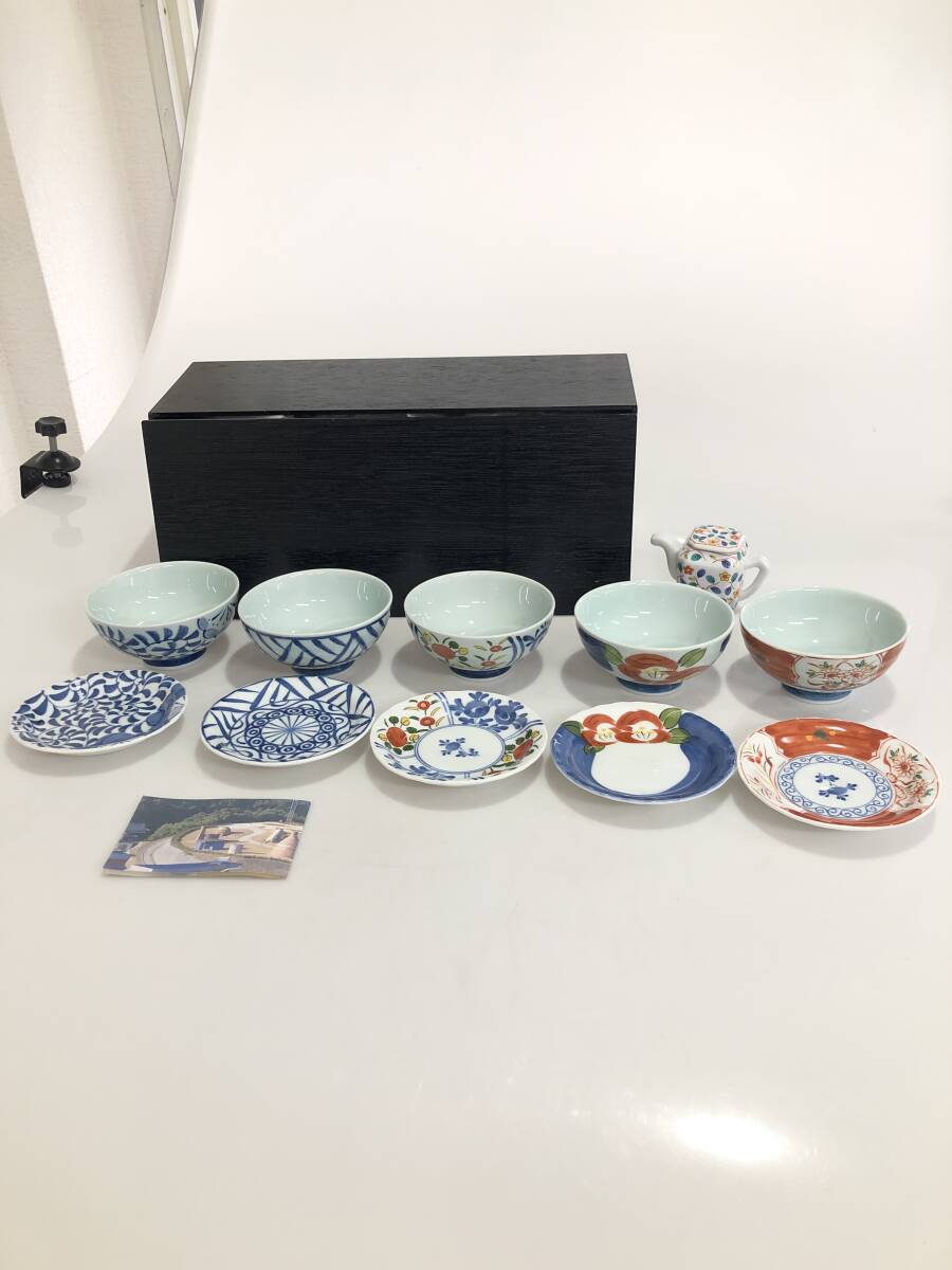 - HB4695 有田焼 清秀 彩絵変り お茶漬揃 小皿 茶碗 和風 和食器