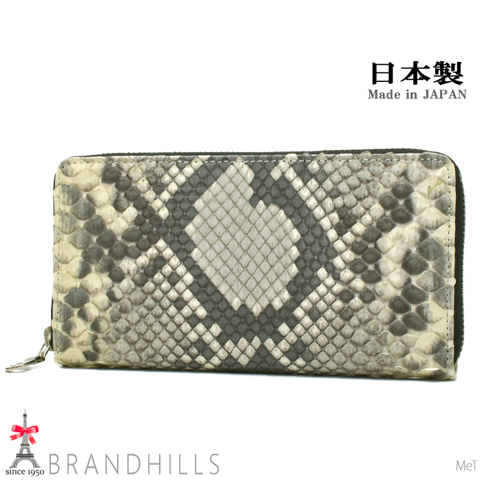 - パイソン 長財布 メンズ レディース ナチュラル マット加工 ラウンドファスナー スネーク 錦ヘビ 日本製 新品