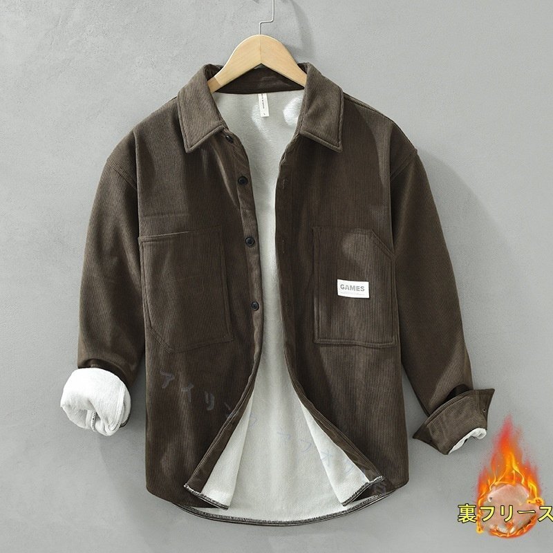 > ☆新品 トップス シャツジャケット 長袖シャツ 裏ボア 裏起毛 裏フリース メンズ ジャンパー ライトアウター 珈琲色 3XL