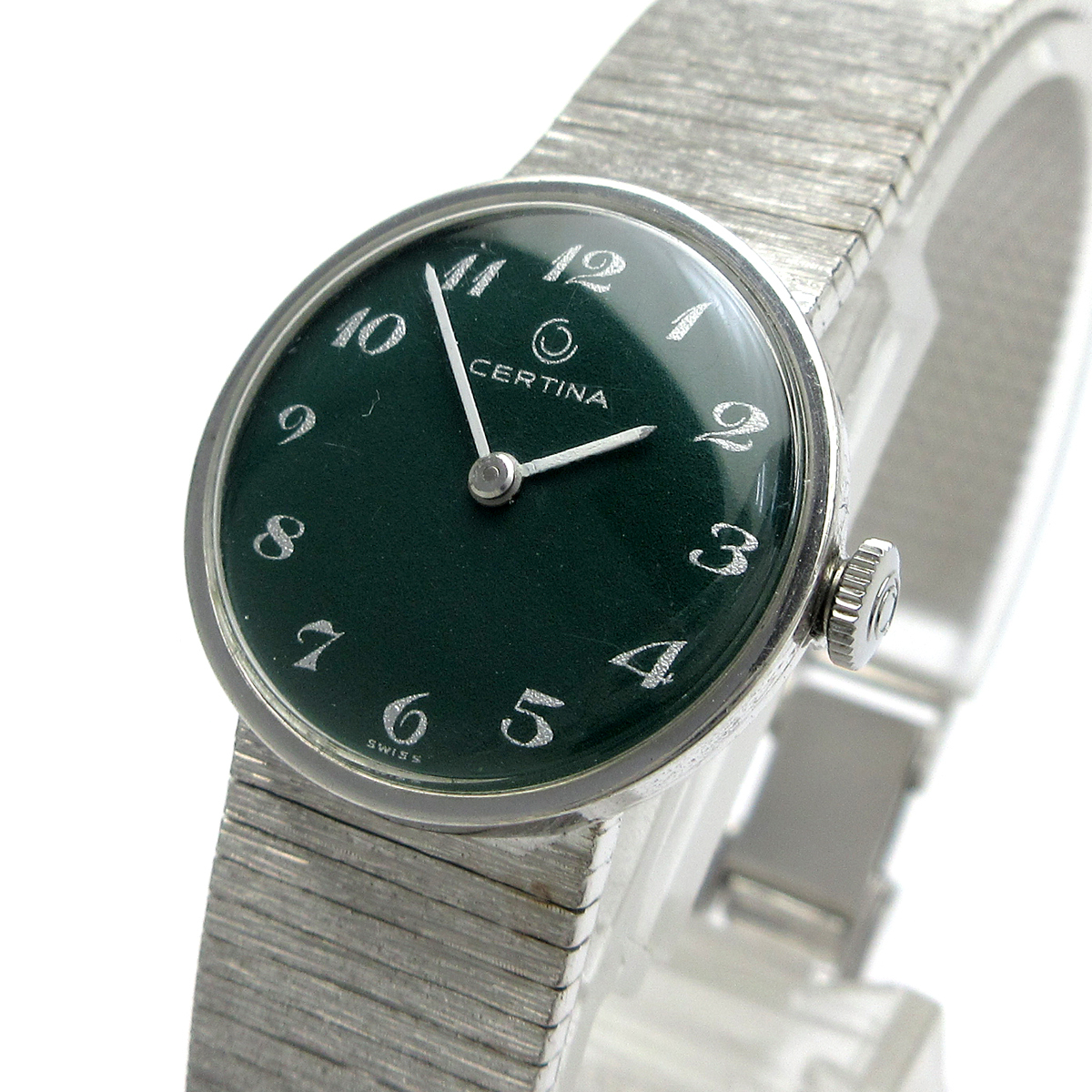 - サーチナ 時計 シルバー925 SV925 レディース 総重量35.6g 銀 グリーン CERTINA 緑 手巻き 稼動品