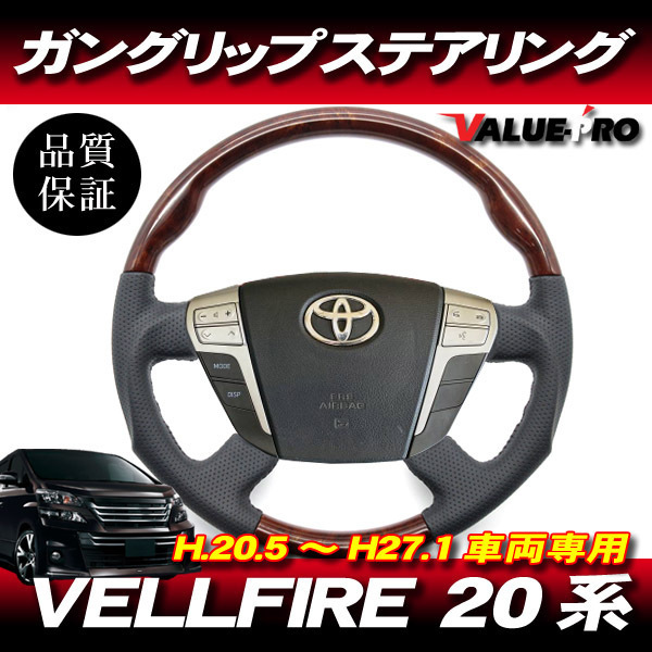 > ヴェルファイア 20系 H20.5-H27.1 ◆ コブ付 スポーツ ステアリング 茶木目 ガングリップ パンチングレザー