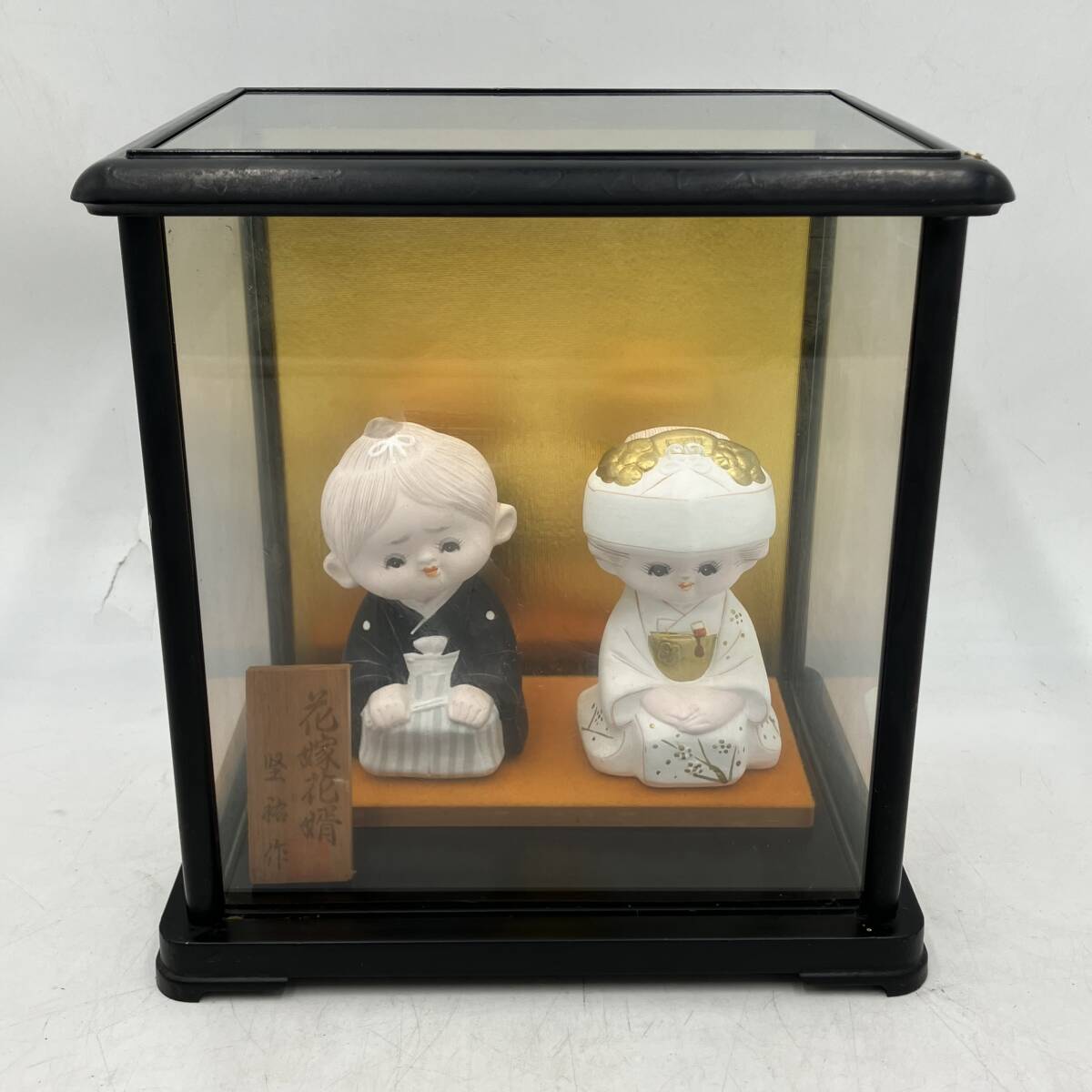 - 【置物】博多人形 堅祐作 花嫁花婿 1点 人形 透明ケース/木札 工芸品