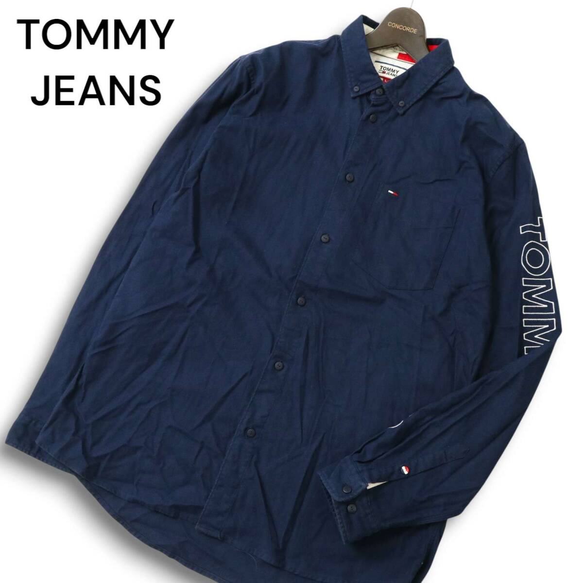 - TOMMY JEANS トミーヒルフィガー 秋冬★ ロゴ 長袖 ボタンダウン ネル シャツ Sz.L メンズ 紺 ネイビー