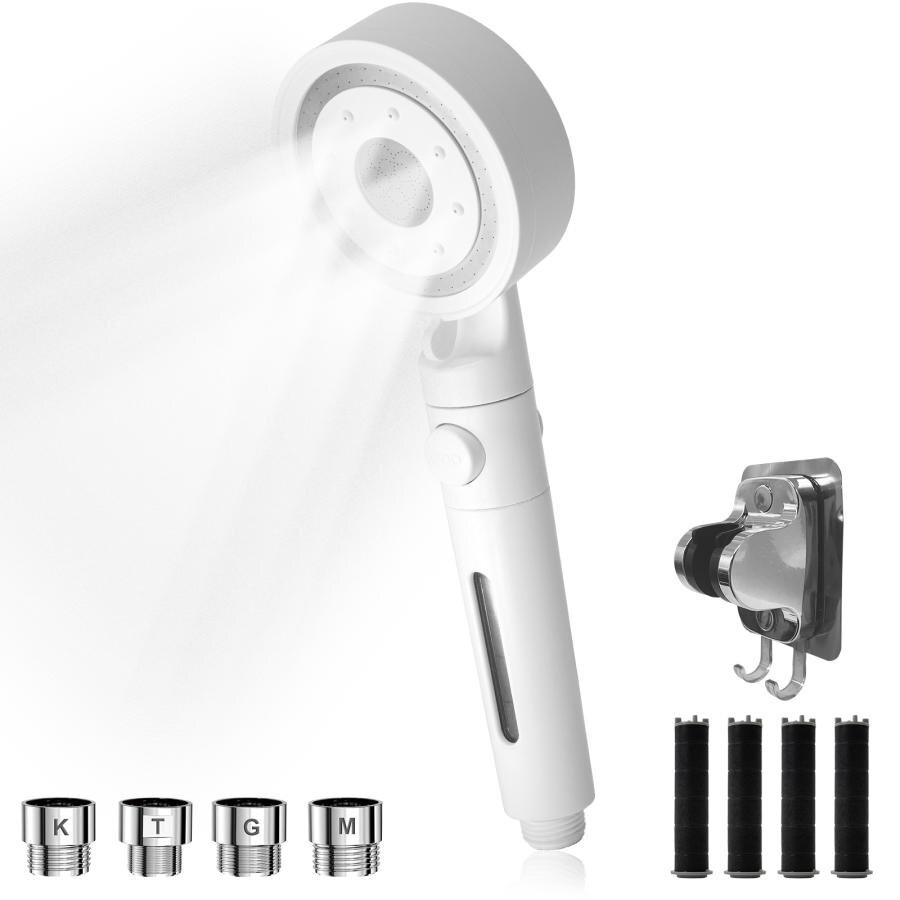 - ONE STEP シャワーヘッド 節水 ナノバブル 節水増圧 増圧 美肌 塩素除去 ミスト 節水 高水圧 手元止水 塩素 6段階 ホワイト