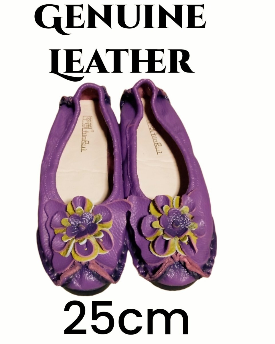 - hinrui本革花飾りシューズ25cm未使用品パープル