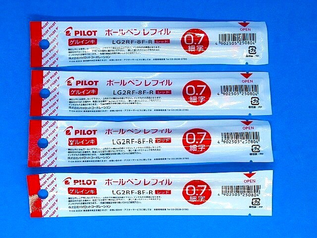 - PILOT パイロット LG2RF-8F-R(赤) ゲルインキ ノック式用替芯 0.7mm(細字)4本★未開封品・送料無料★
