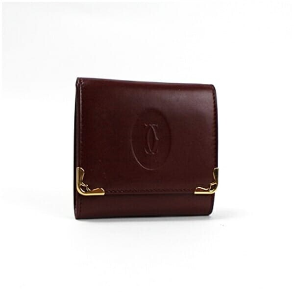 - 55619 カルティエ マストドゥカルティエ コインケース スクエア ボルドー 中古 Aランク Cartier 女性 レディース