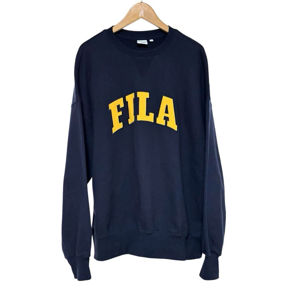 - ※J FILA フィラ 長袖トレーナー スウェット ネイビー×イエロー Overfit ドロップショルダー メンズ サイズS