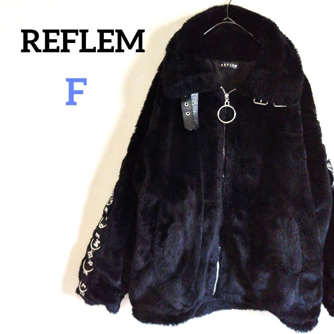 > REFLEM レフレム PUレザーロゴファージャケット ハイネック ブルゾン 地雷系量産型 もこもこ 原宿 Dリングロゴテープ リングジップ
