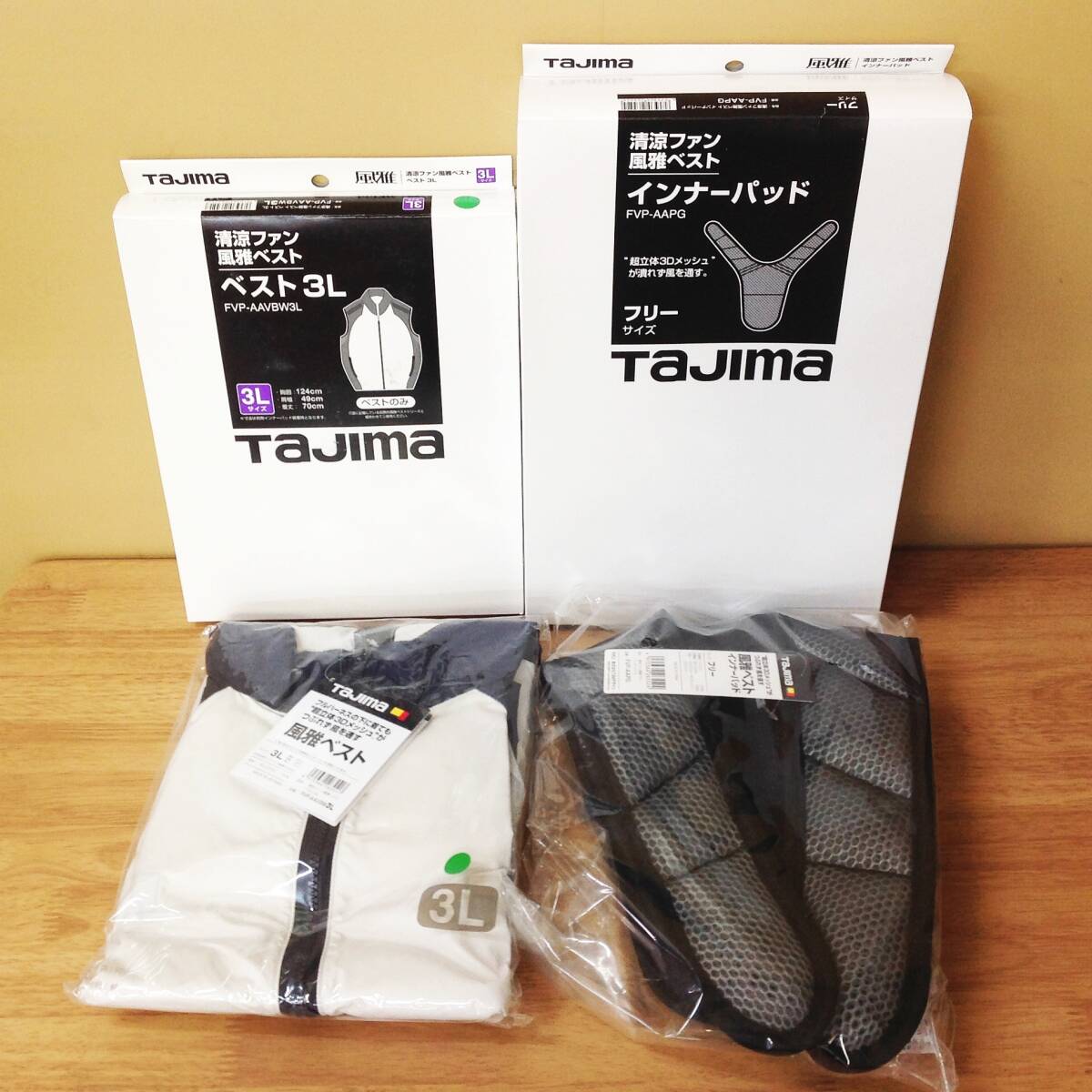 - 【WH-7662】未使用 Tajima タジマ 清涼ファン風雅ベスト Lサイズ FVP-AAVBW3L & インナーパッド サイズフリー FVP-AAPG 計2点セット