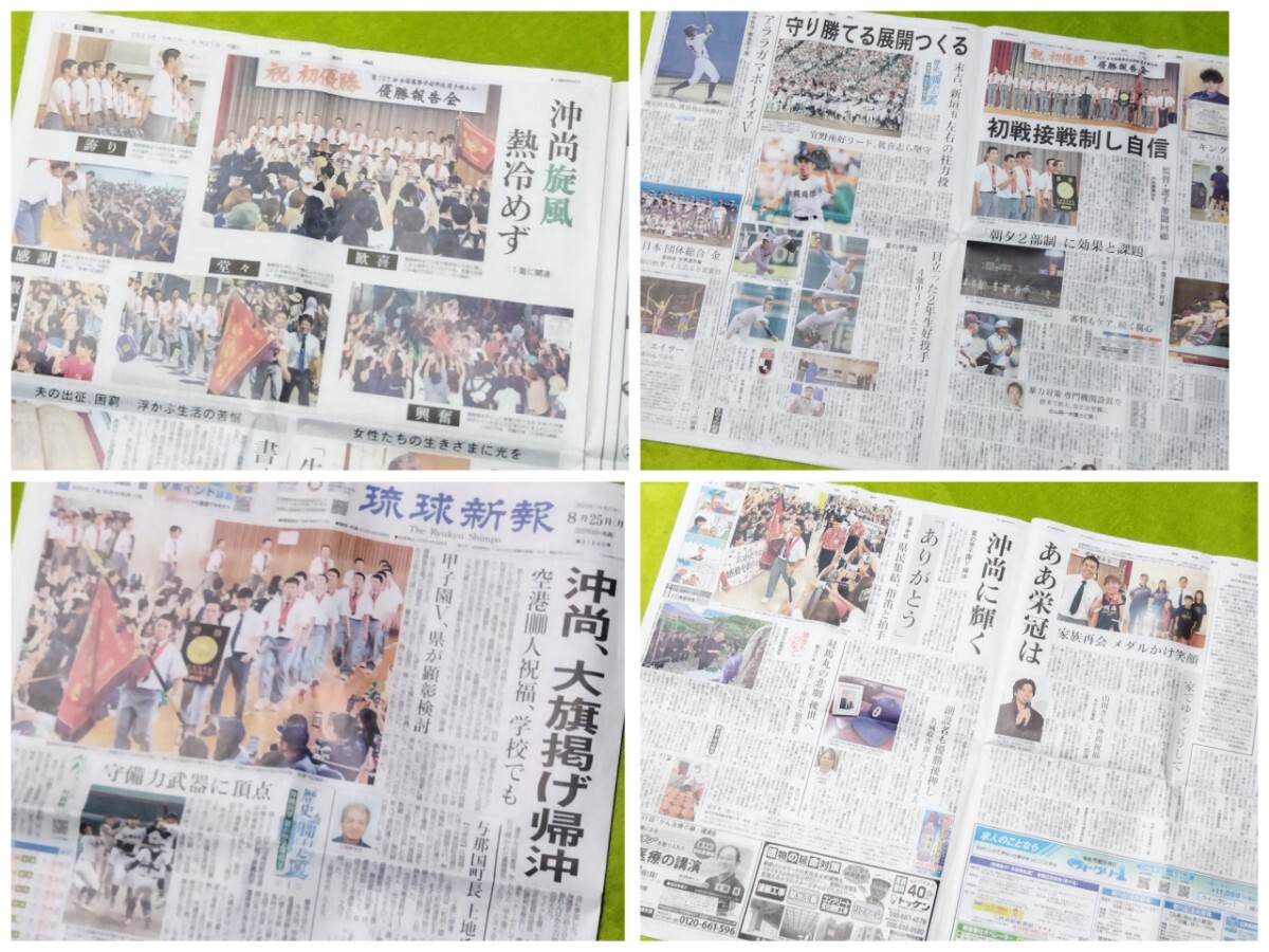 - 沖縄尚学 優勝報告 新聞 第107回全国高校野球選手権大会 琉球新報 2025.8.25/山田裕貴 祝福記事あり