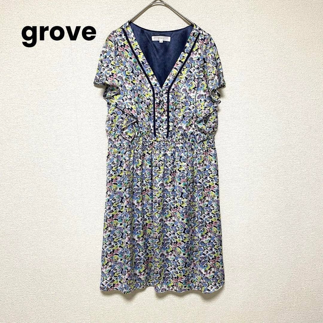 - qq84 grove グローブ/美品/総柄フレアワンピース/花柄ひざ上ワンピース