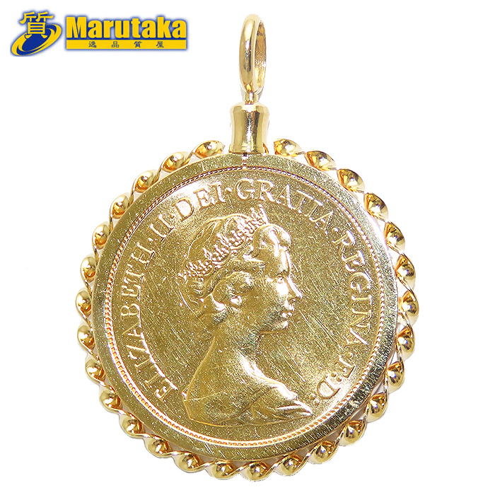 - ソブリン金貨 ペンダント トップ K22 K18 YG 9.5g エリザベス コイン 1982 Sovereign coin Diamond Pendant Top