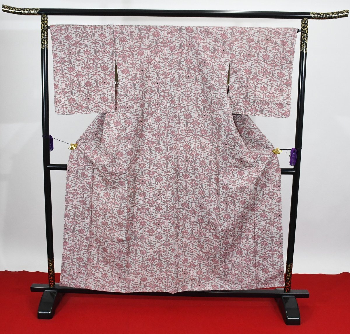- 紬 つむぎ 和更紗 笹 身丈151cm 裄丈67cm ★着物 pb-3363 桜庭呉服店