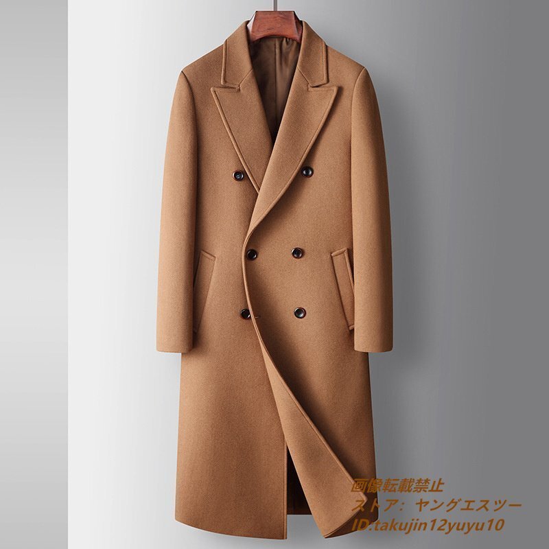 - 最高級 メンズコート カシミヤコート 紳士 ビジネスコート 厚手 ロングコート ダブルボタン チェスターコート ウールアウター キャメル XL