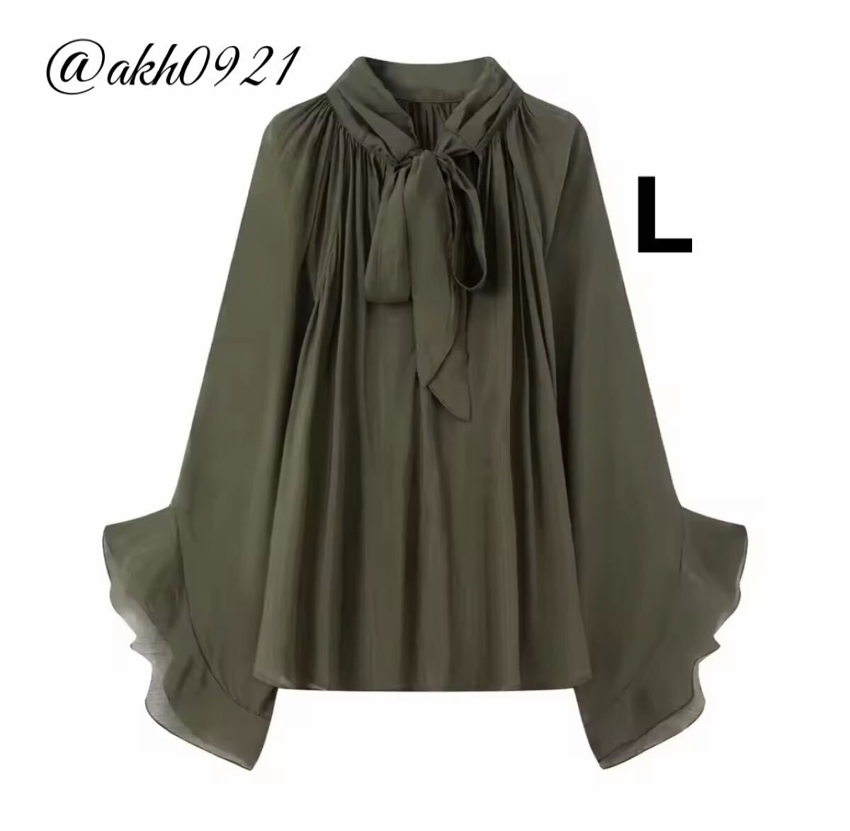 - 新品未使用★2025 秋新作★vintage ヴィンテージ レトロ カーキ リボン ボウタイ ブラウス トップス Lサイズ レディース★ZARA 好きな方に
