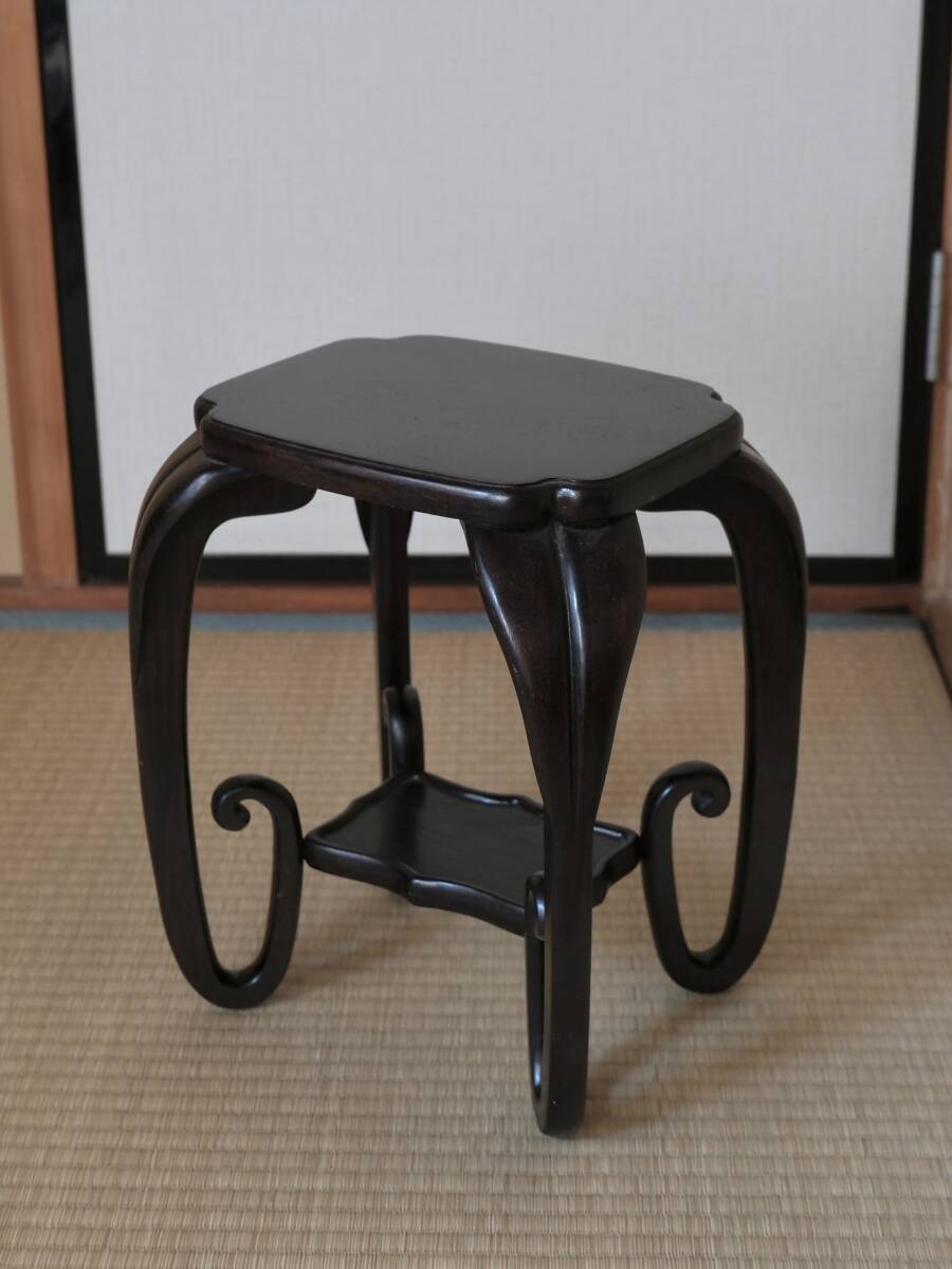 - 【青枠】紫檀高脚 花台 唐木如意巻足高卓 二重天板飾り台 盆栽台 華道具 茶道具 古道具 時代物 美術品Q1895