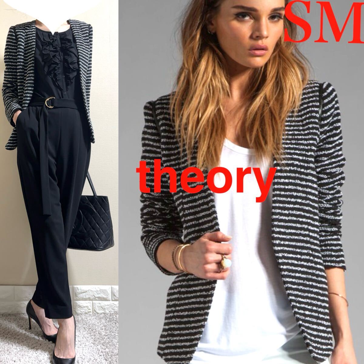 - 美品!セオリー theory ツイード ノーカラージャケット 黒 SM P 通年 ショルダージップディテール モノトーン