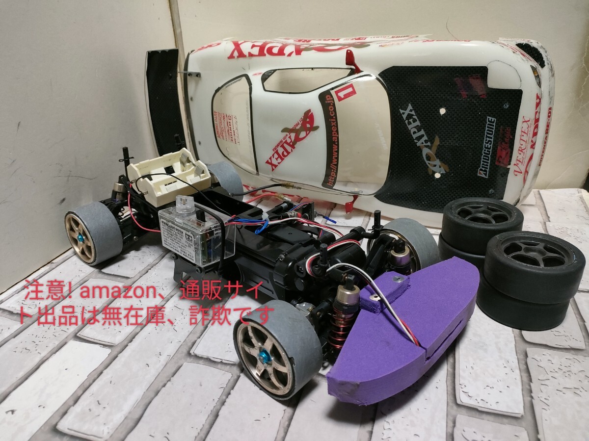 - 希少!タミヤTLフロントワンウェイシャーシ アルミパーツ、ダンパー等Apex RX-7 ボディ 珍品ストロボユニット仕様