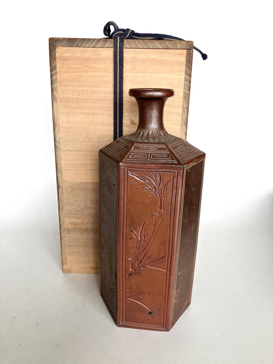 - 即決! 古備前 六角柱徳利 右石作 木箱付き