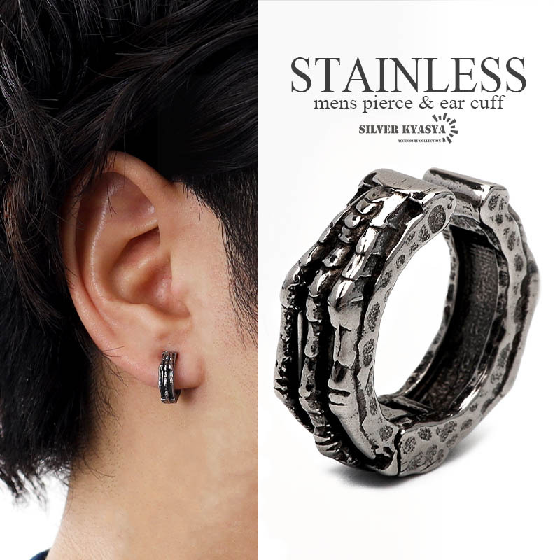 - ステンレス イヤーカフ 鳥 爪 ワンタッチ 開閉式 メンズ ピアス シルバー イヤカフ 金属アレルギー対応 片耳用 1点
