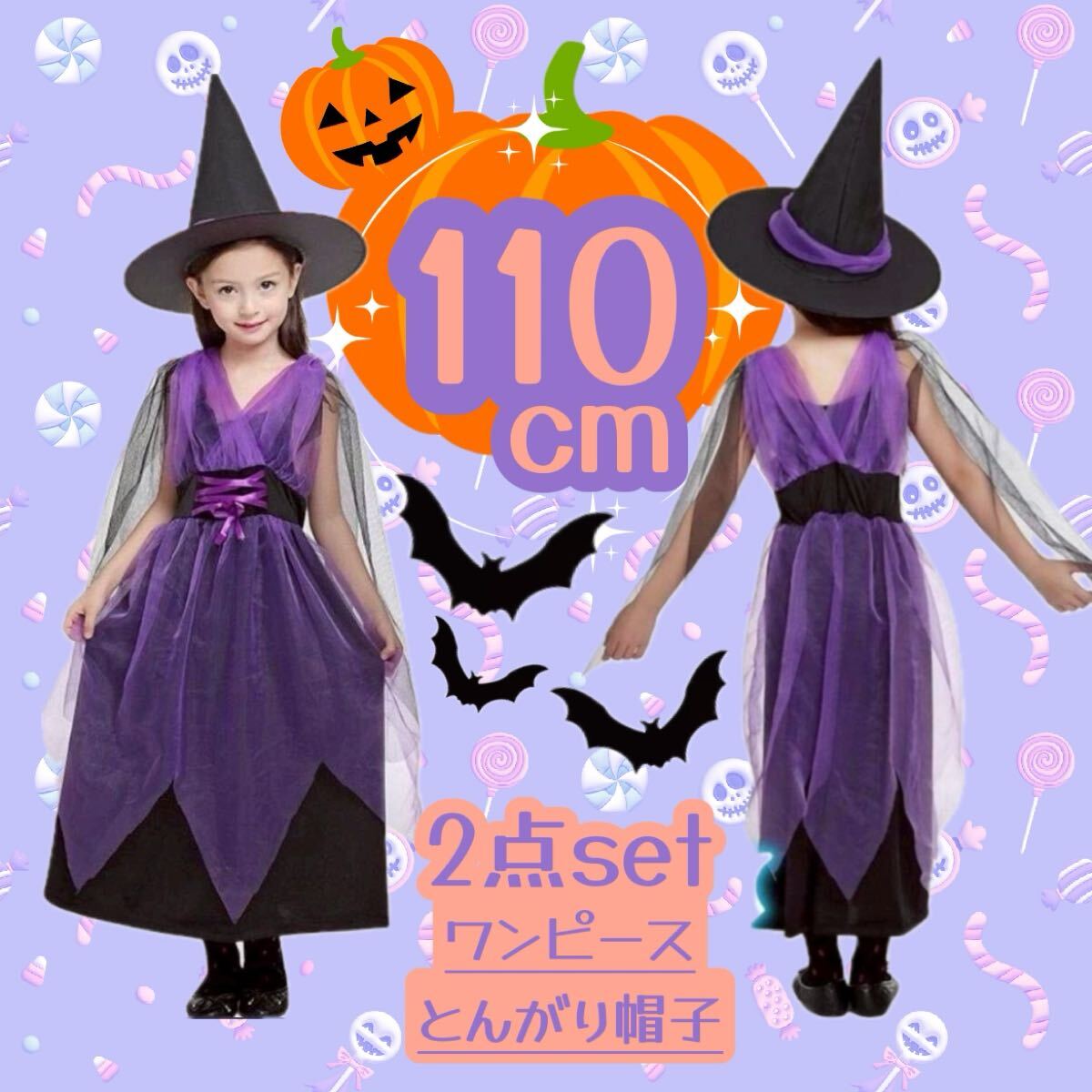 - 魔法使い コスプレ 110cm 2点 ワンピース 帽子 ハロウィン パープル