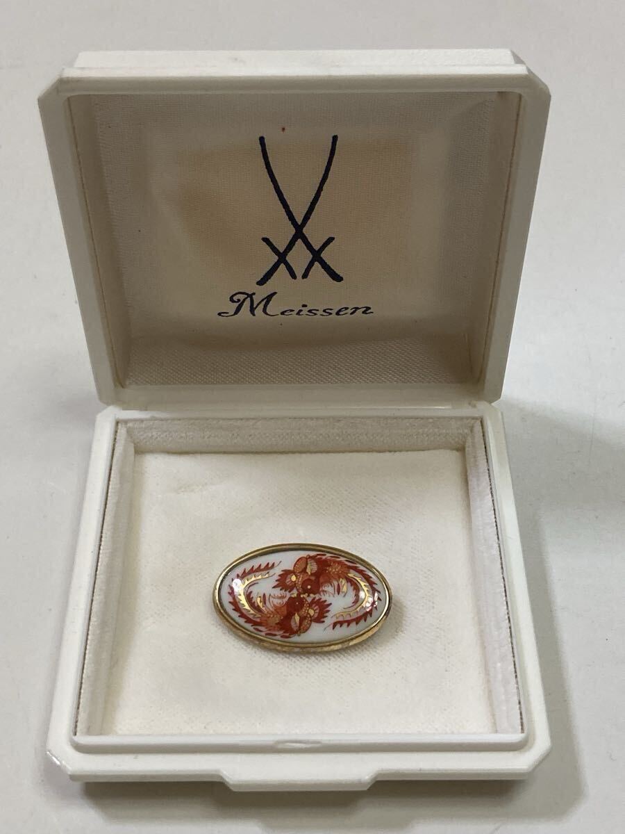 - T8-025・Meissen*マイセン・ブローチ*枠(刻印585)総重量・3g*アンティークドラゴンレッド ・ケース付き