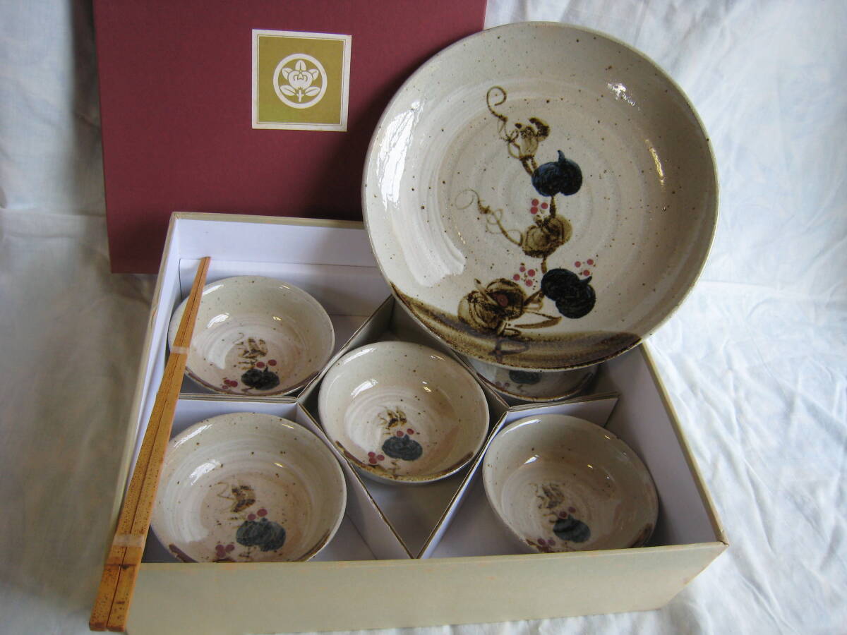 - ☆たち吉☆/「山帰来」天ぷら揃え/大皿と取り皿5客 箸付き/美品 未使用・保管品 元箱あり