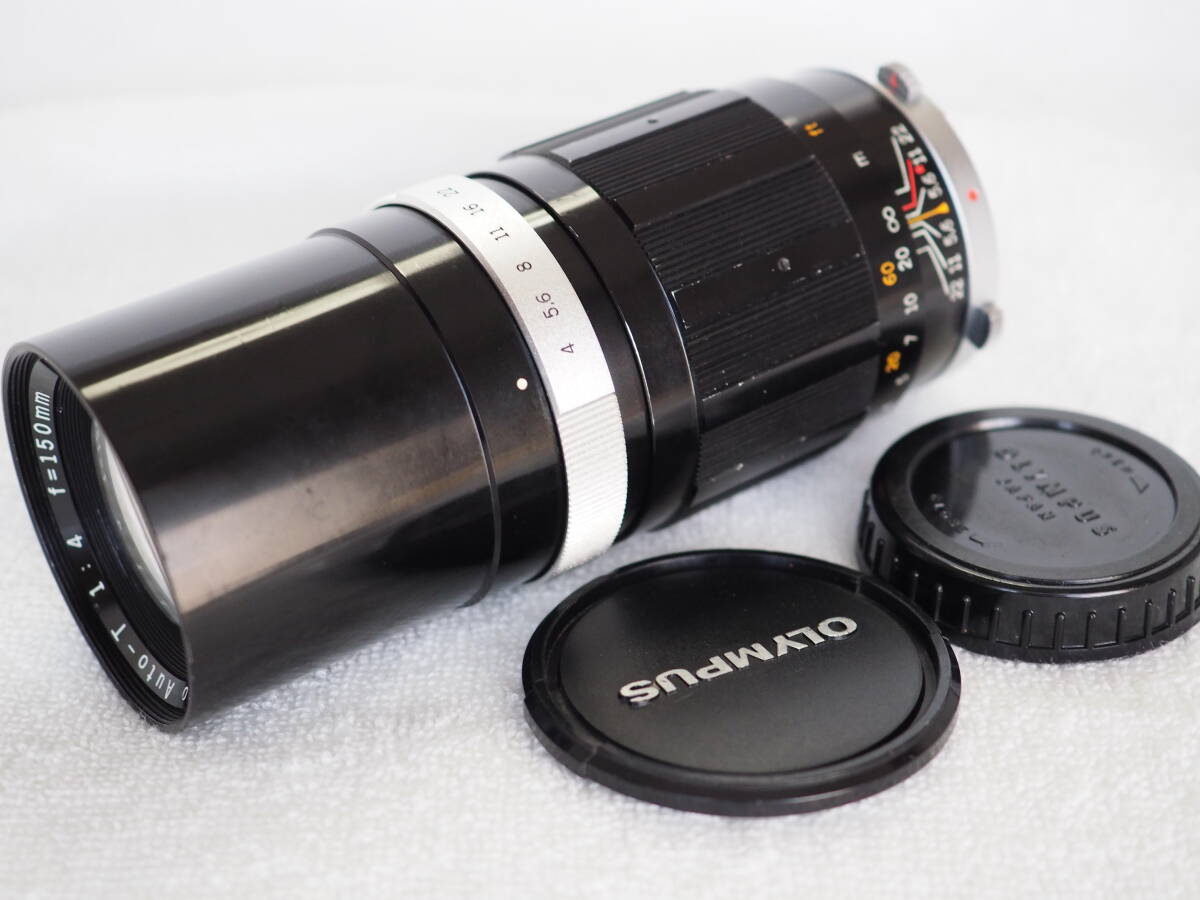 - オリンパスPEN-F (フイルムカメラ)用 E.Zuiko Auto-T150mmf4レンズ(前後キャップ付き)