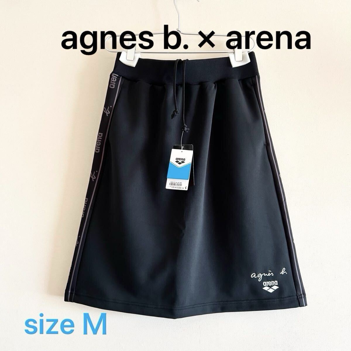 - 新品 アニエスベー アリーナ agnes b. × arena スカート ジャージ生地 ボトムス ブラック レディースM