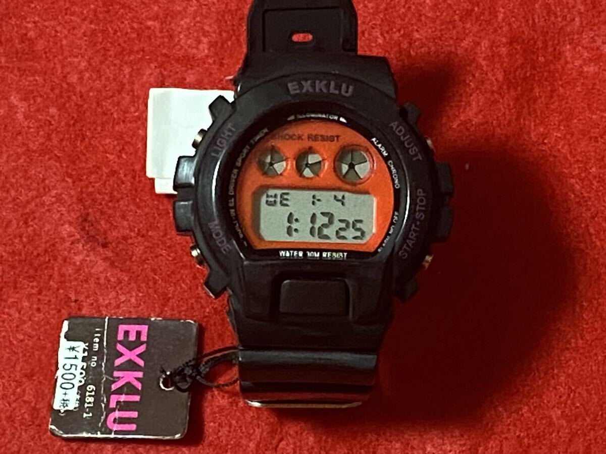 - EXKLUデジタル腕時計 BL×WH 多機能 電池交換済み ブラック