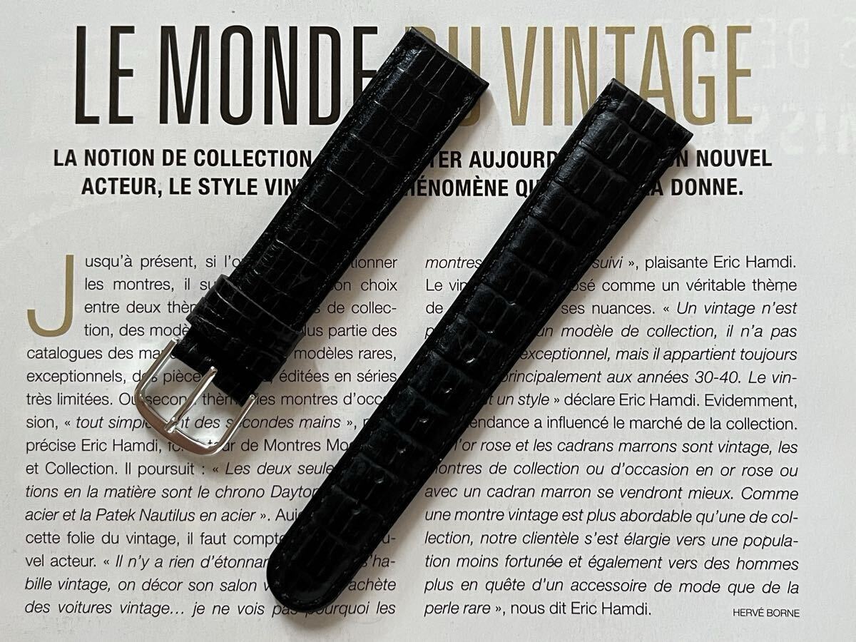 - 18mmユーロストックfromフランス レザー時計ベルト ブラック テジュー型押し メーカー在庫未使用デッドストック品 ヴィンテージ B18-5