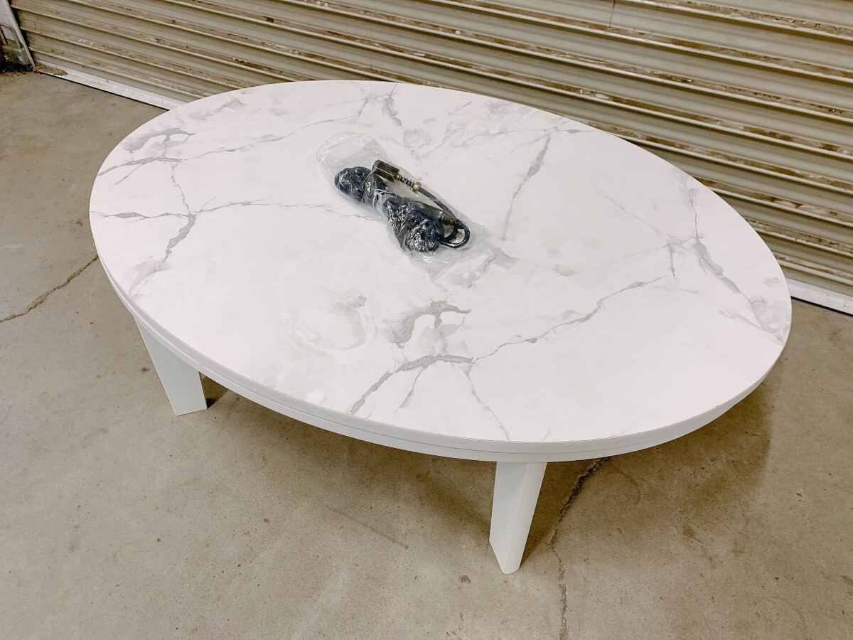 - 中古 動作OK こたつテーブル 大理石調 幅105×奥行75×高さ37cm 2023年製 楕円形 ホワイト おしゃれ こたつ 机 テーブル 0828こ2 M 200