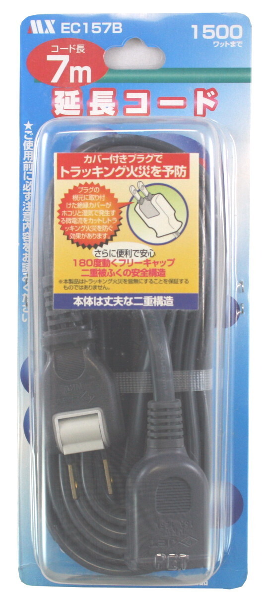 - 電源タップ [1個口] 延長コード 7m 黒 スイングプラグ 15A トラッキング防止プラグ EC157B