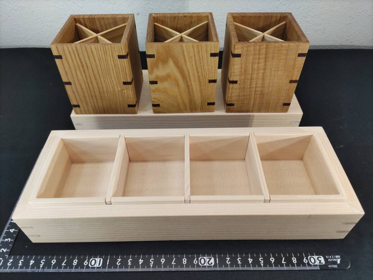 - ■送料無料!■まとめて■家具・木工の町・旭川・木製■木箱■小物入れ■デイスプレイ■コレクションケース■ペン立て■4点セット!