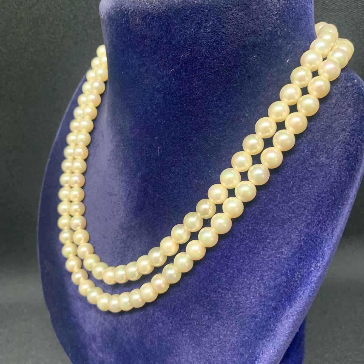 - 【美品】2連パール 真珠 ネックレス アクセサリー シルバー金具 約6.5mm 約40cm SILVER 本真珠 アクセサリー 留具
