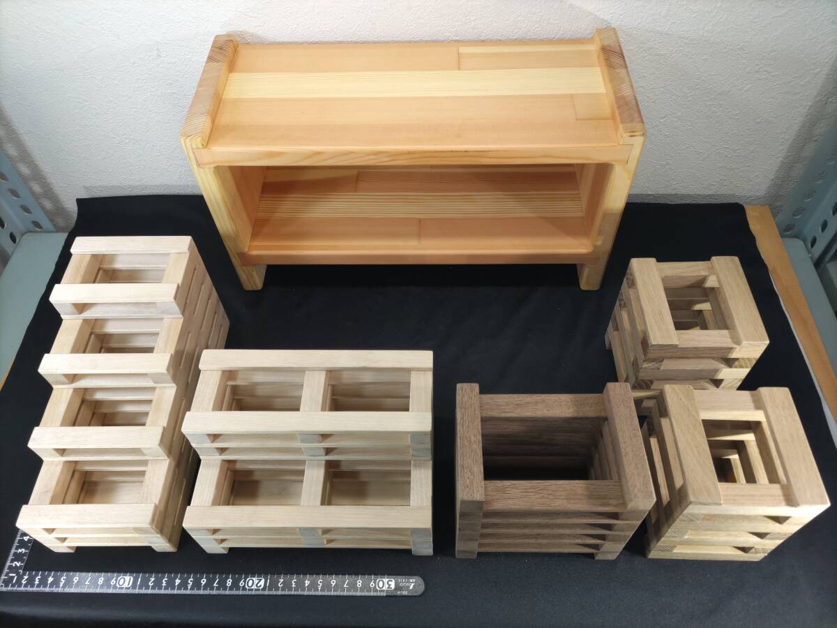 - ■送料無料!■まとめて■家具・木工の町・旭川・木製■ペン立て■スマホ・リモコン・メガネ■デイスプレイ■陳列・飾り棚■6点セット!