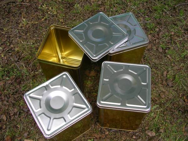 - 中古 18リットル缶 角蓋 4個の値段 食用油のリサイクル品 洗浄済 油汚れなし サイズ240*240*H350ミリ 一斗缶