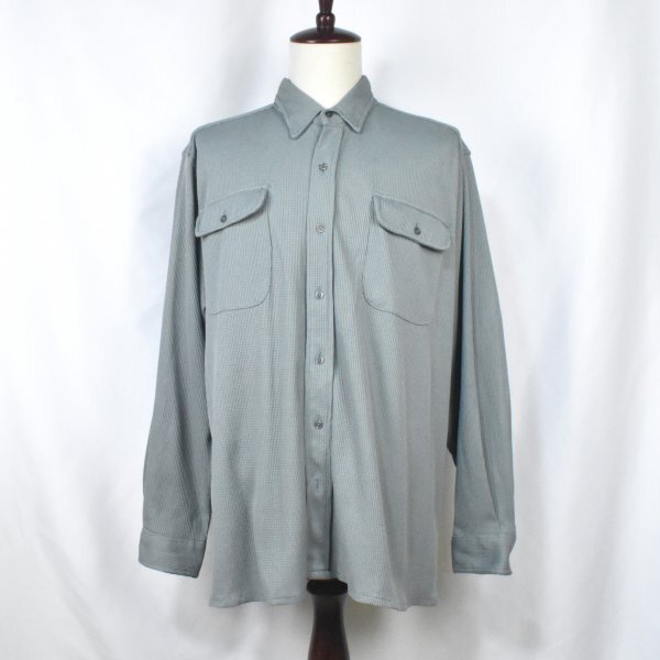 > 90s HABAND ビンテージ ワッフル地 長袖シャツ sizeXL~ 青灰色 ブルーグレー くすみブルー ビッグシルエット 大きいサイズ USA古着 90年代