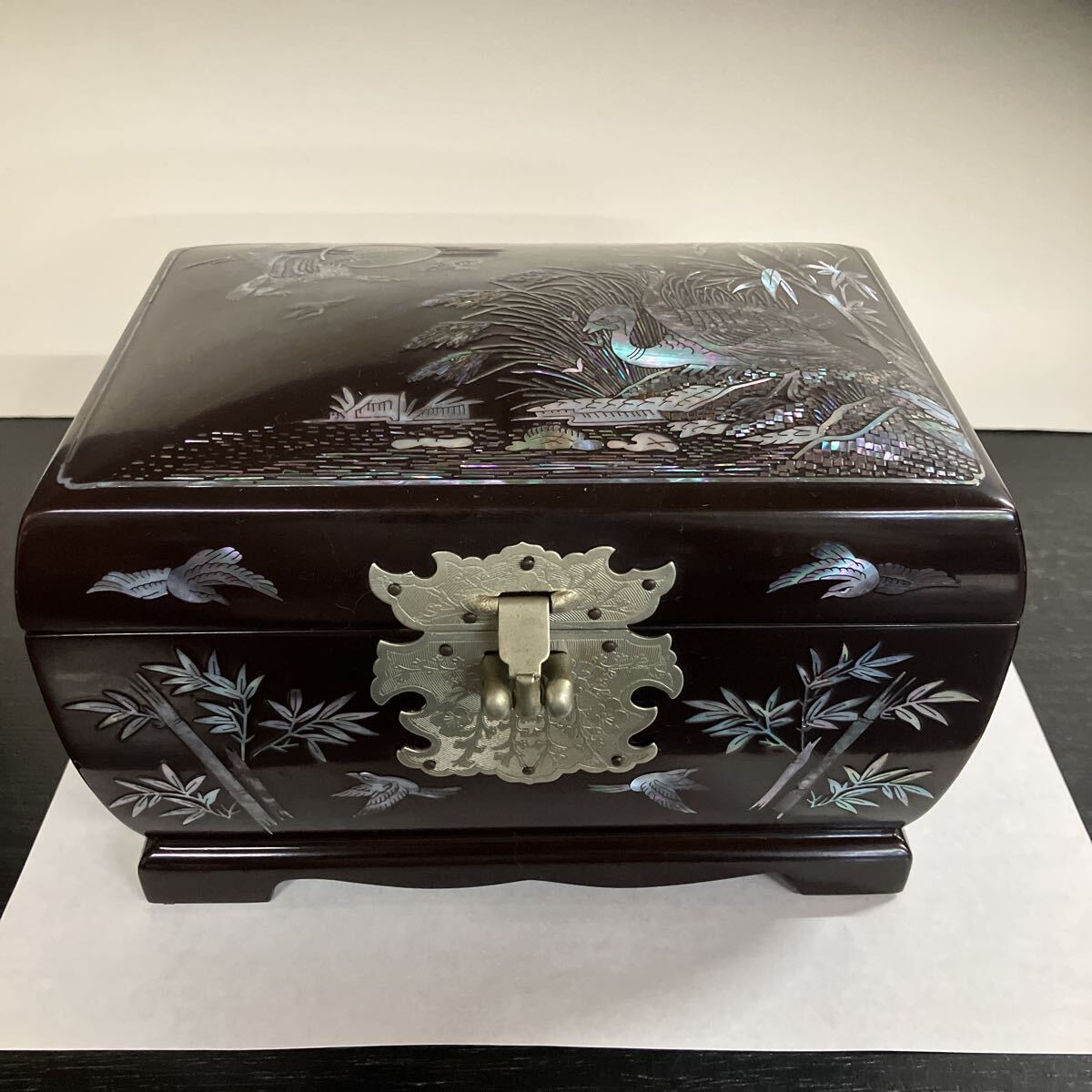 - ラデン宝石箱 高さ約12cm 奥行約12.5cm 横約18.5cm アクセサリーケース 漆器 アンティーク 小物入れ 宝石箱 ジュエリーボックス