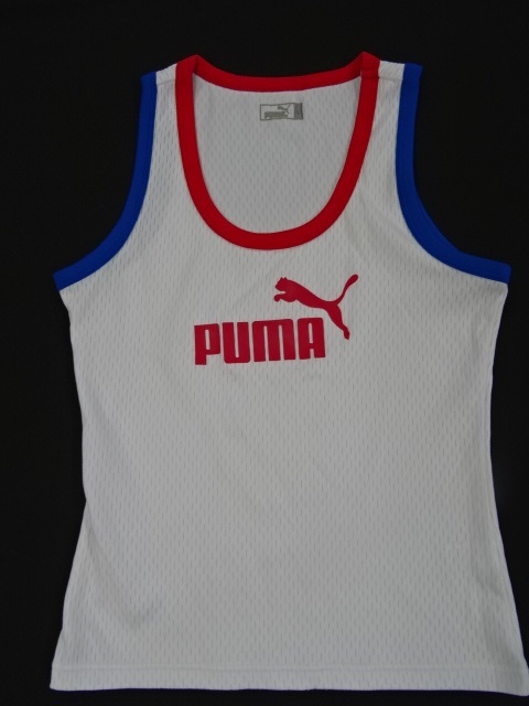 - PUMA プーマ タンクトップ シャツ ノースリーブ 白×赤×青 ロゴTシャツ メッシュ キッズ トップス 夏 Lサイズ