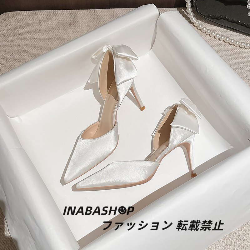 - ウェディング シューズ ブライダルシューズ 結婚式 パンプス 白 黒 ウエディングシューズ 二次会 ハイヒール リボンパンプス パーティー靴