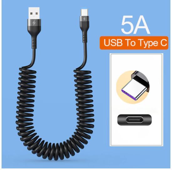 > 送料無料 未使用品 コイル スプリング USBケーブル Type C 5A 66W ブラック 1m 高速充電 データケーブル f5