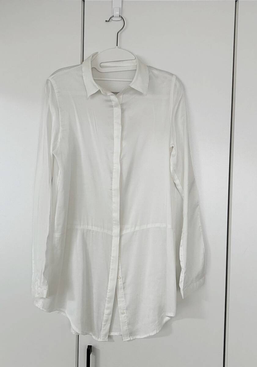 - 送料無料♪白シャツ 長袖 ロング丈 身頃切り替えデザイン ホワイトブラウス