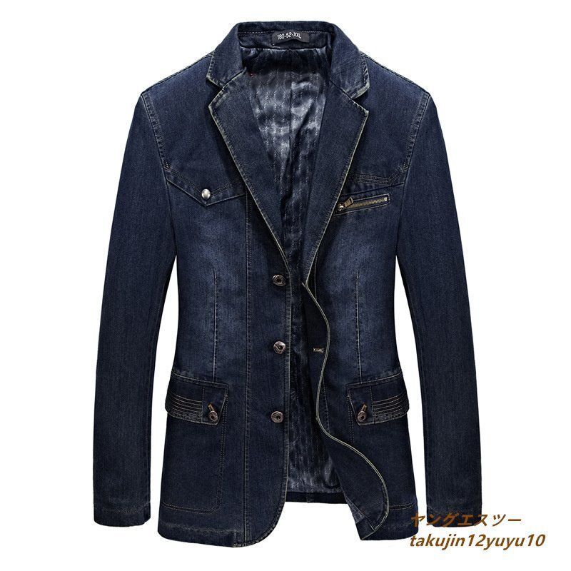 - 新品 デニムジャケット メンズ テーラードジャケット Gジャン 上品 ブレザー ジャンパー 細身 ブルゾン パッチワーク ミリタリー M