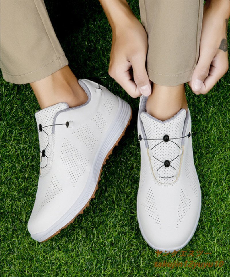 - 高級品◆GOLF靴 ゴルフシューズ 男女 スニーカー メンズ 運動靴 快適 防水スポーツシューズ 耐久性 4E幅広 カジュアル耐摩耗 白 27.0cm